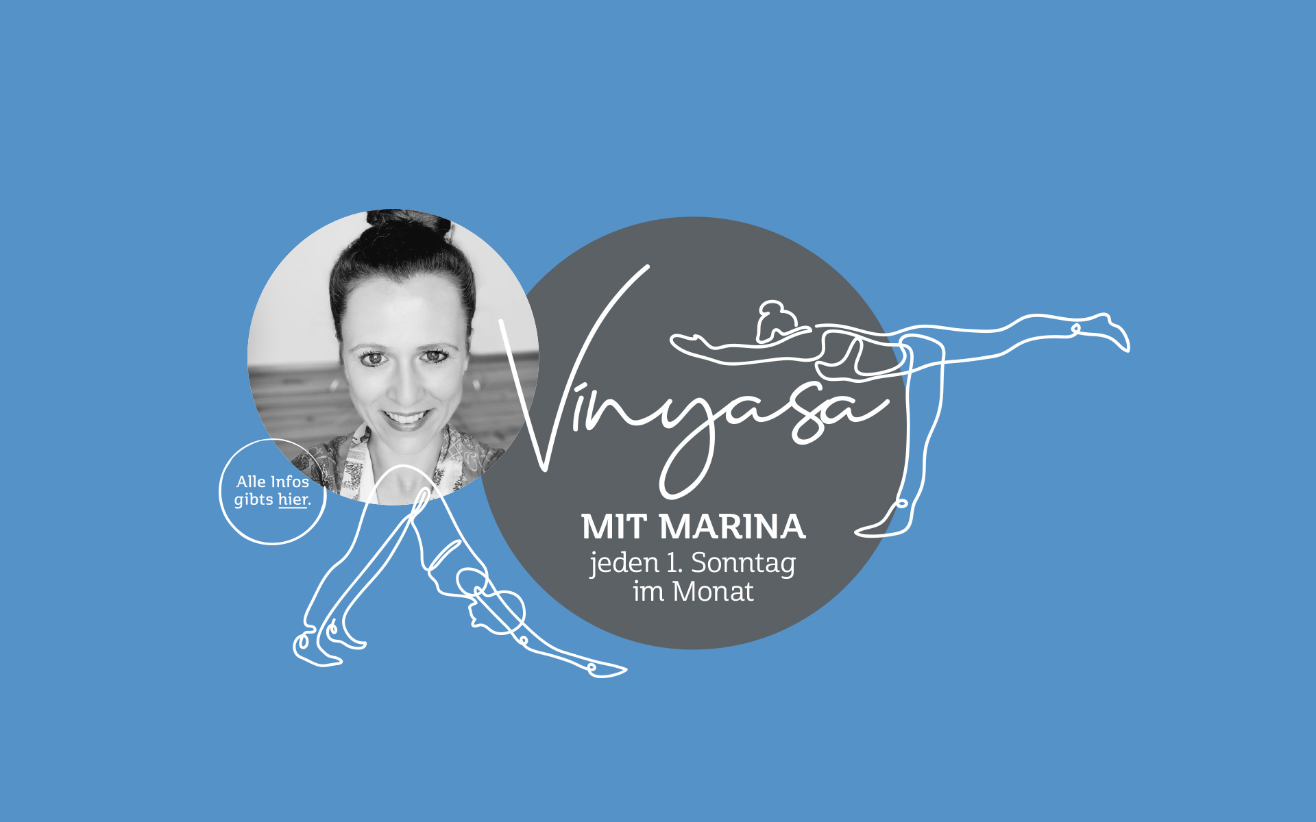 An jedem ersten Sonntag im Monat kommt Marina und der Vinyasa Yoga – hier kräftigst, dehnst und entspannst du den Körper und beruhigst Deinen Geist.